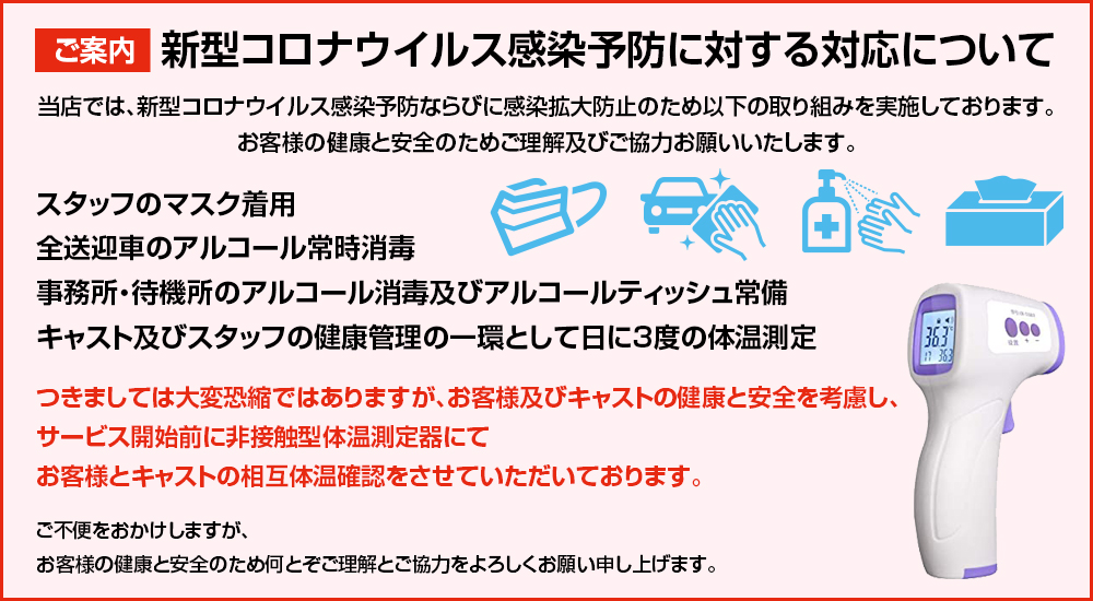 お客様とキャストの相互体温確認をさせていただいております。